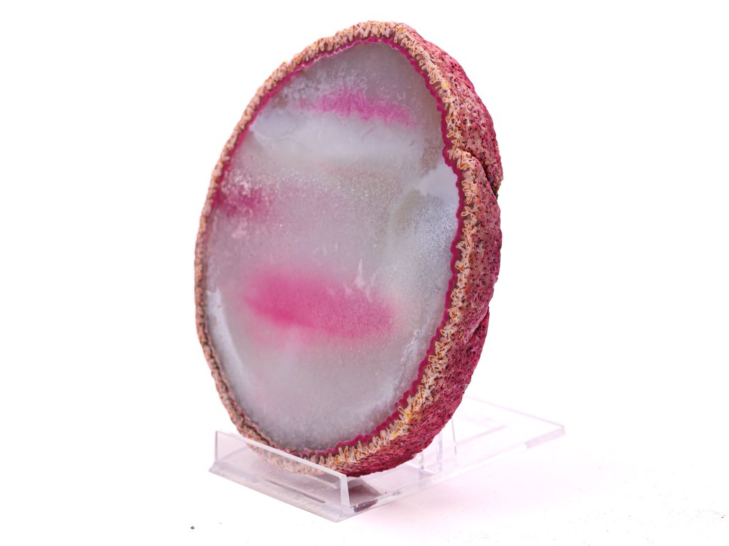 Růžový achát je kamenem klidu, lásky a vnitřní rovnováhy. Skvěle se hodí jako elegantní dekorace do bytu, jemný doplněk pracovního prostoru nebo originální sbírkový kámen, který zaujme svým jemným zbarvením.