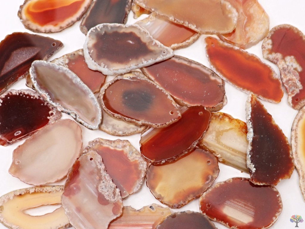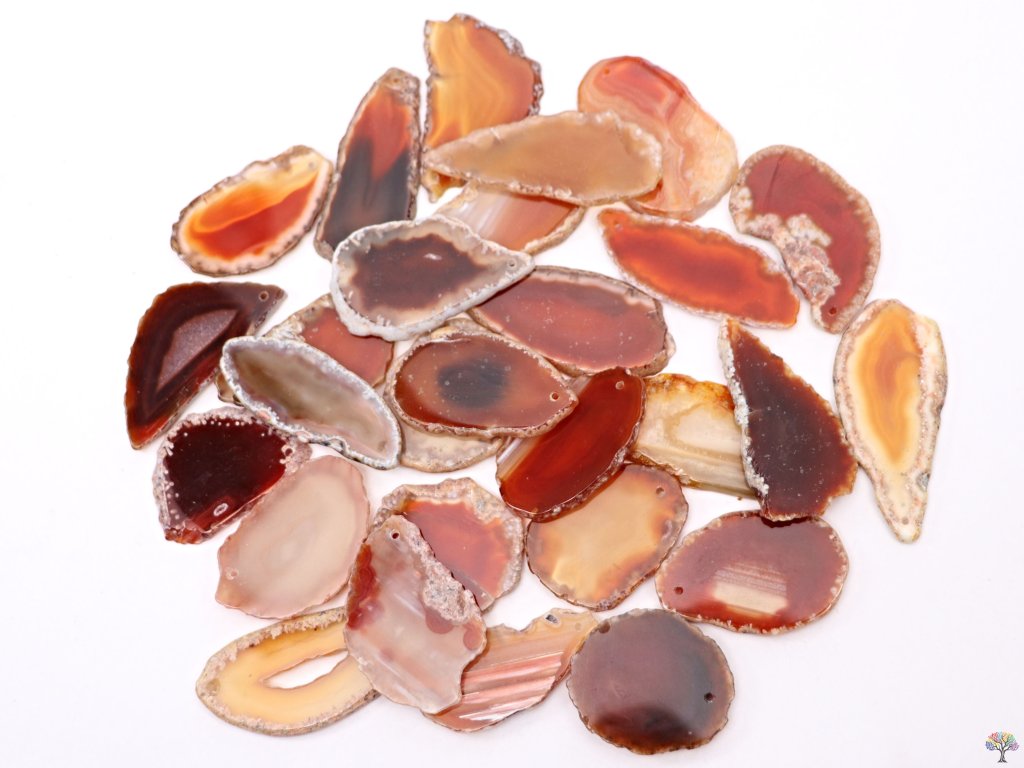 Achátový plát červený s dírkou - velikost 3 - 5 cm #491