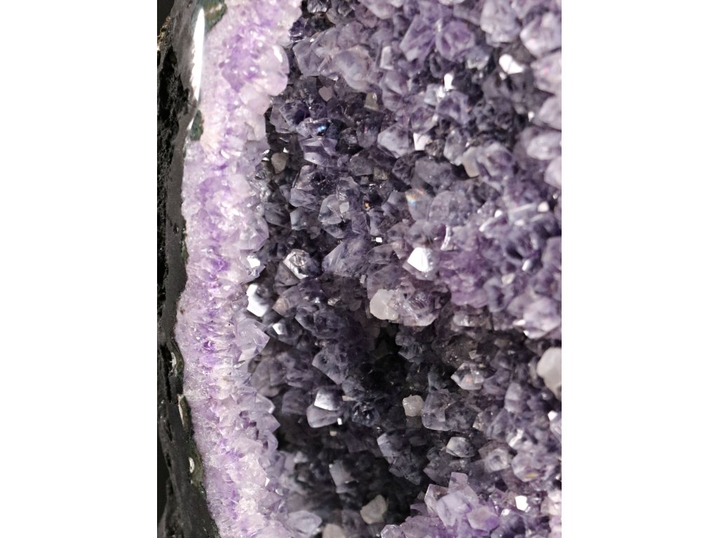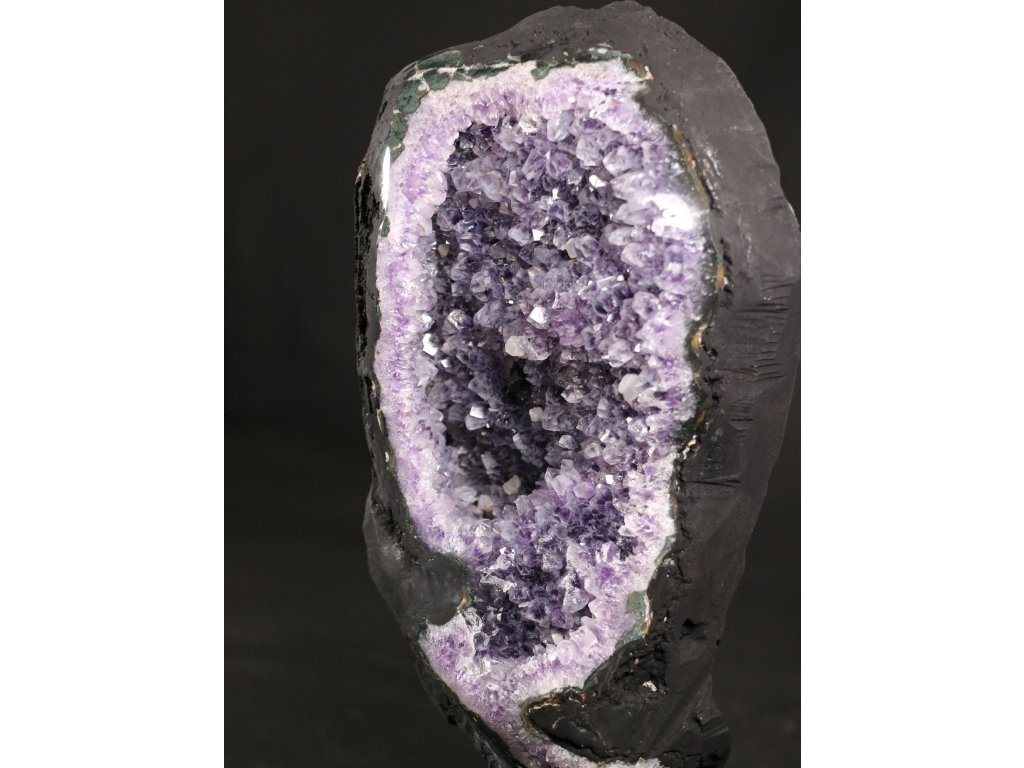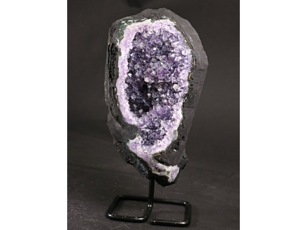 Ametystová drúza vysoké kvality s krystaly fialové barvy na kovovém stojánku