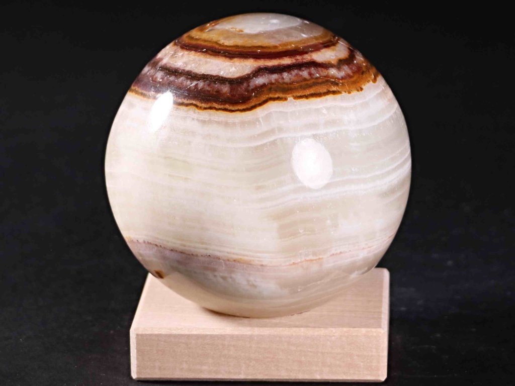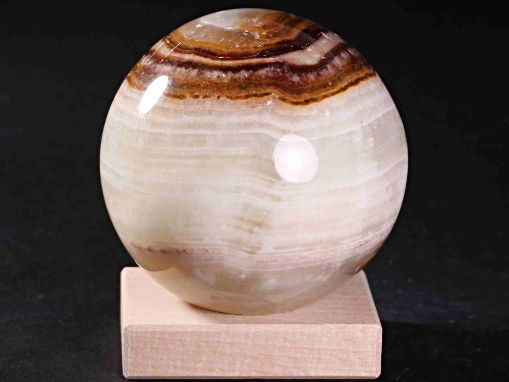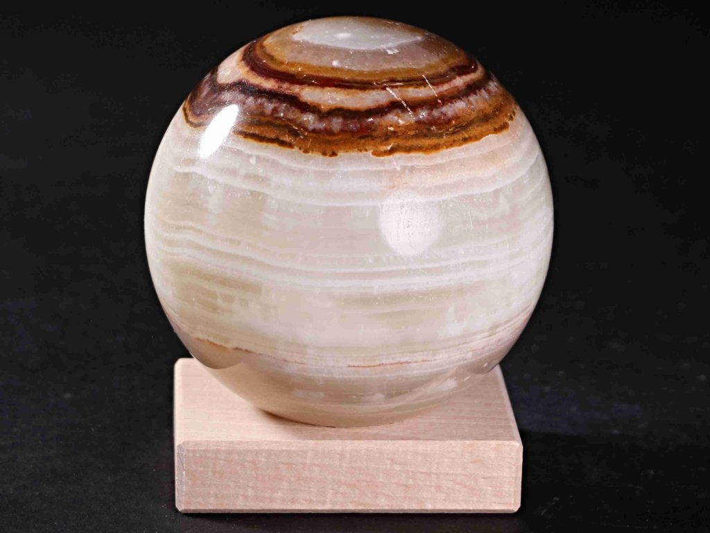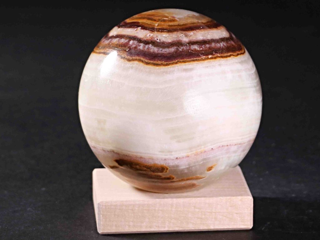 Koule Aragonit 1.288 kg - 10 cm + dřevěný podstavec #20