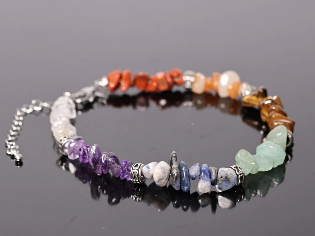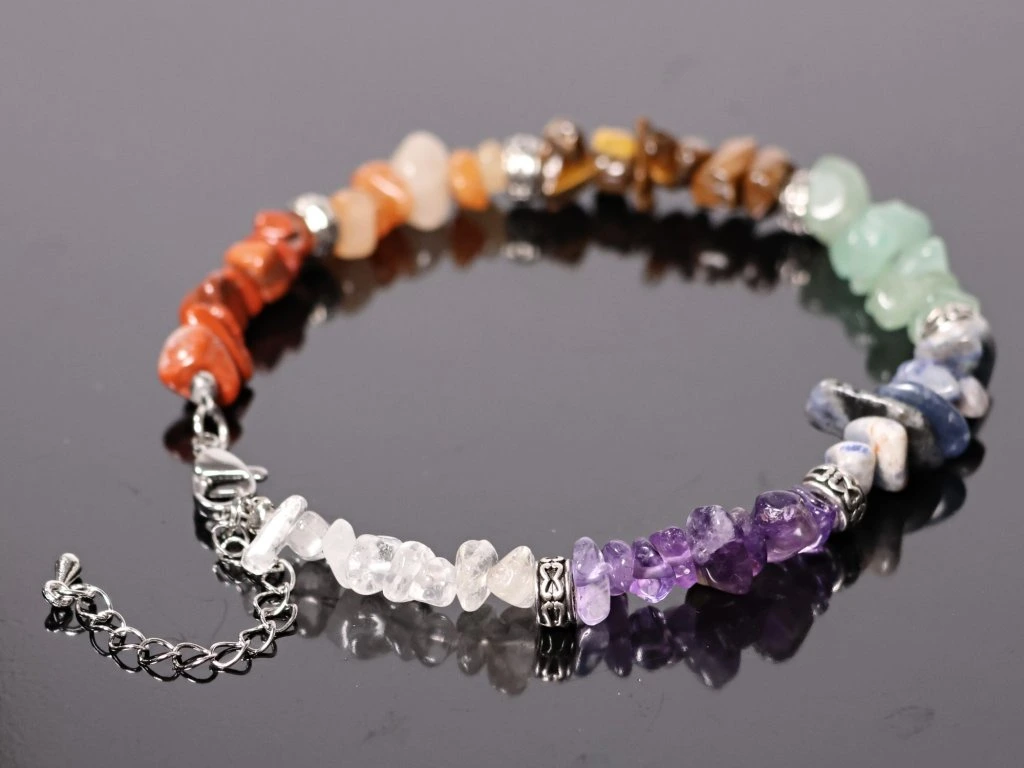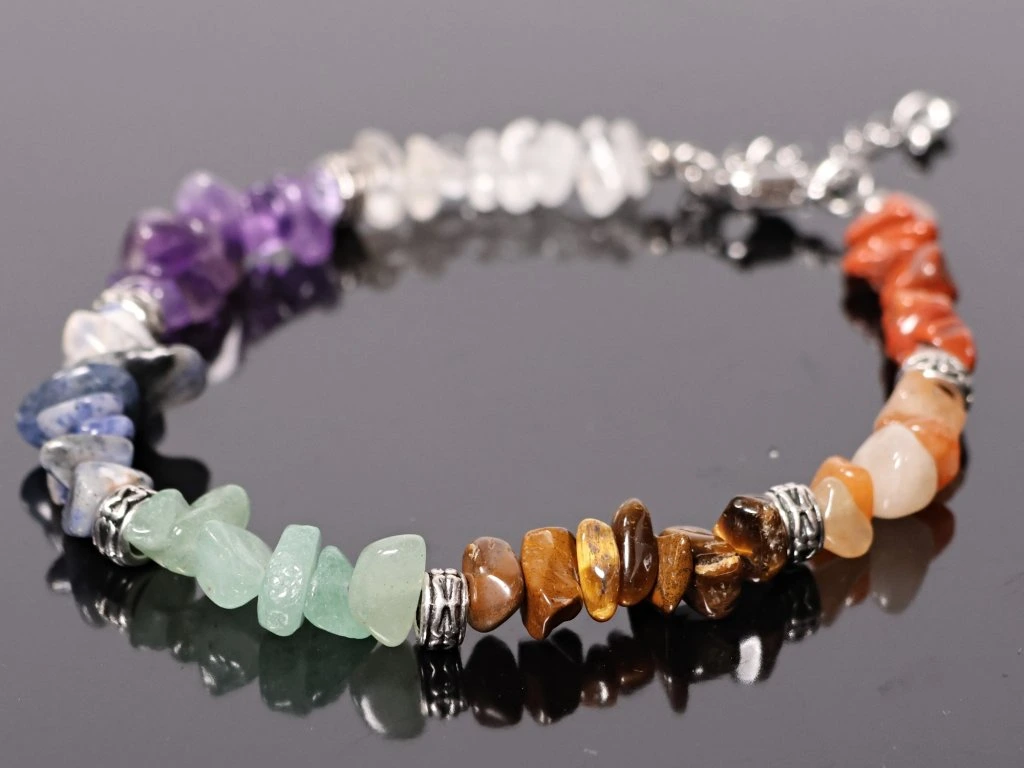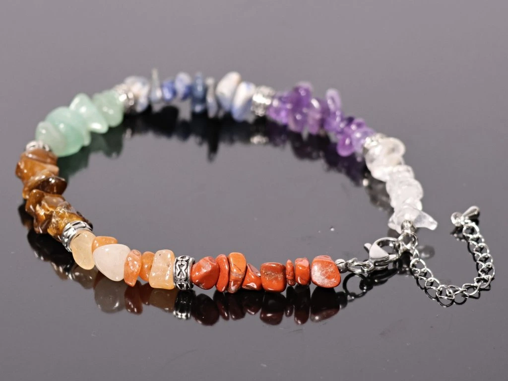 Zharmonizujte své tělo i mysl s tímto krásným a smysluplným šperkem! Tento okouzlující dámský náramek kombinuje tromlované kamínky v barvách sedmi čaker s elegantními kovovými korálky v barvě starostříbra. Představuje dokonalý doplněk pro milovnice jógy, meditace, boho stylu i jako krásný osobní talisman pro každý den.