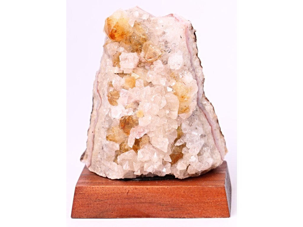 Citrínová drúza vysoké kvality na dřevěném podstavci