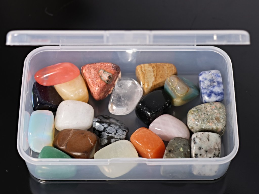 Sada 20 tromlovaných kamenů + box #ZB527 harmonizační mix minerálů