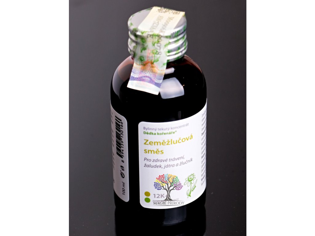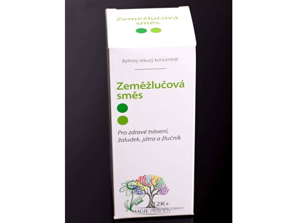 - Zeměžlučová směs obsahuje byliny, které podporují normální trávení (zeměžluč, andělika, fenykl, chmel), mají příznivý vliv na střevní trakt (čekanka), podporují přirozenou pH rovnováhu žaludku (andělika), chuť k jídlu (fenykl, pampeliška, andělika, pelyněk), metabolismus tuků a sacharidů (jalovec) a napomáhají udržovat zdravou hladinu cukru v krvi (jalovec a pelyněk).