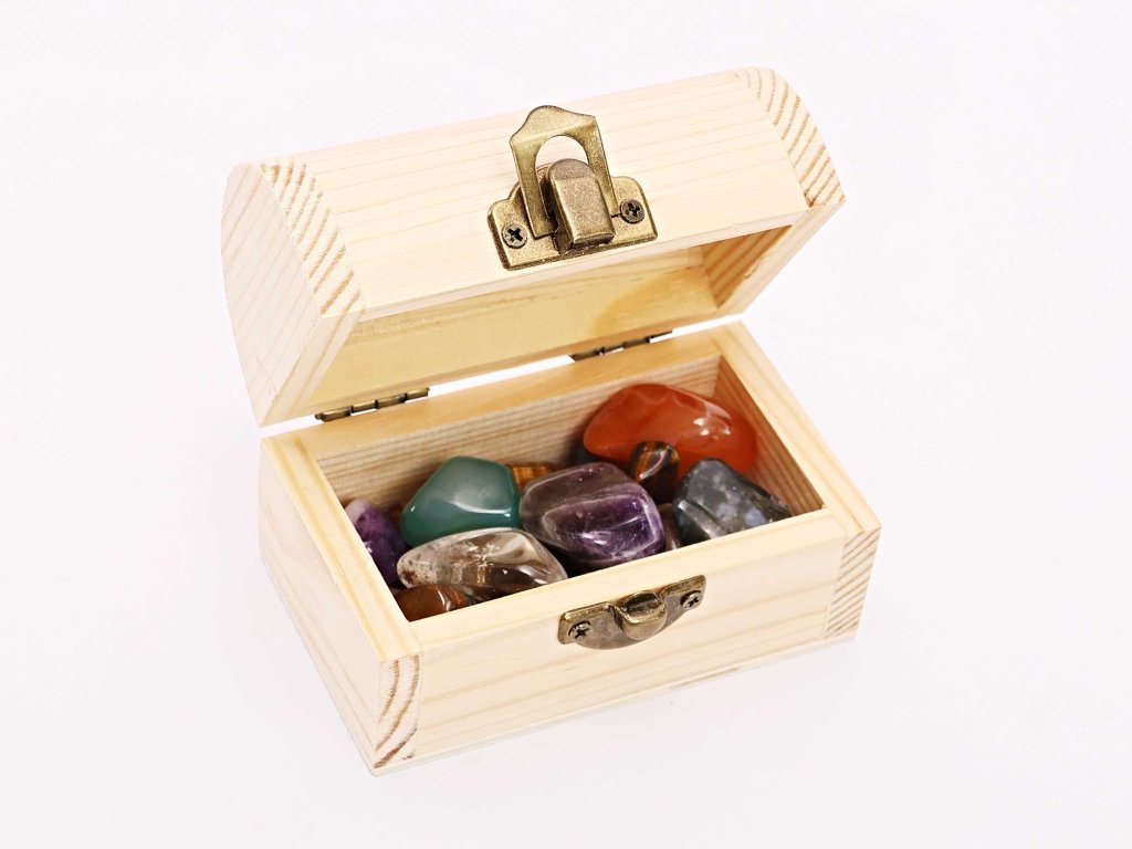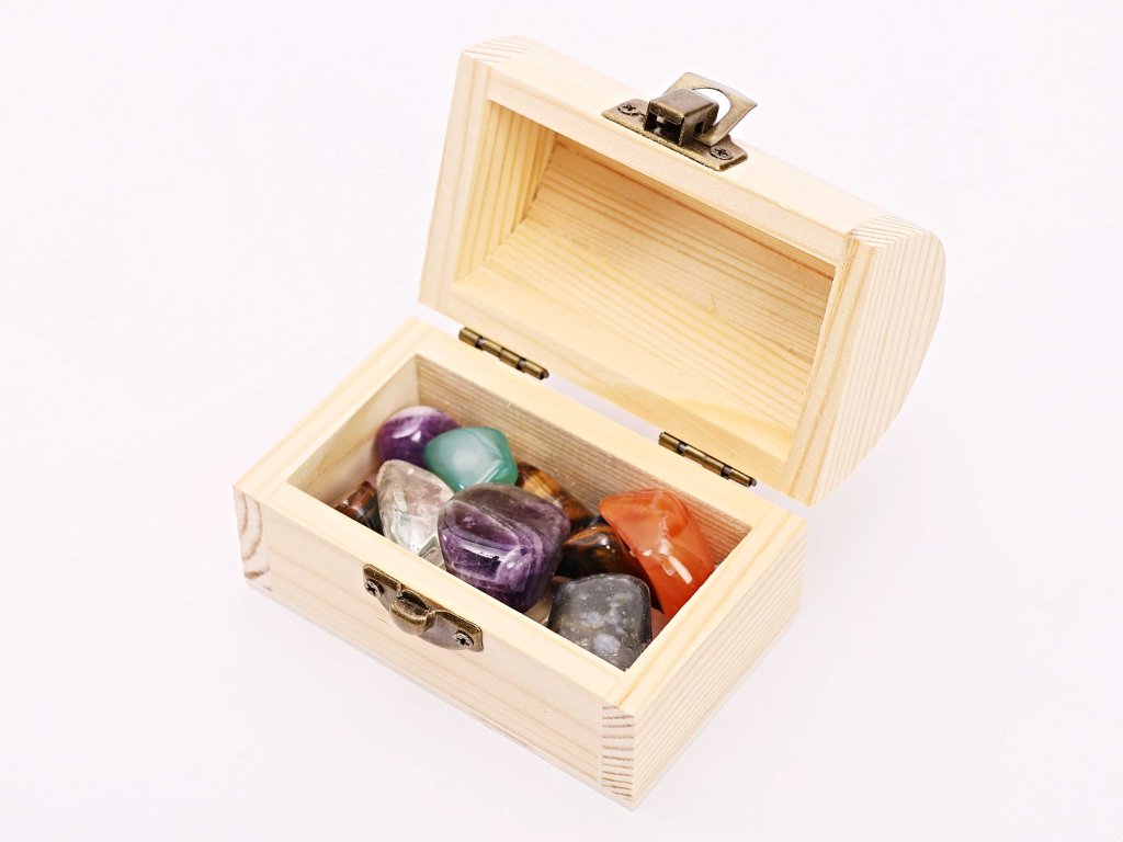 Truhlička je nejen praktická, ale i dekorativní – skvěle se hodí jako dárek pro milovníky minerálů nebo jako doplněk do duchovního koutku.