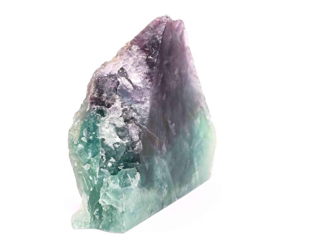 Tento nádherný leštěný surový Fluorit vyniká svými přirozenými barevnými přechody – od jemně zelených až po fialové odstíny, které symbolizují harmonii a klid. Díky své unikátní struktuře a velikosti se stane výraznou dekorací interiéru, ale také silným ochranným kamenem podporujícím soustředění, intuici a duševní rovnováhu.