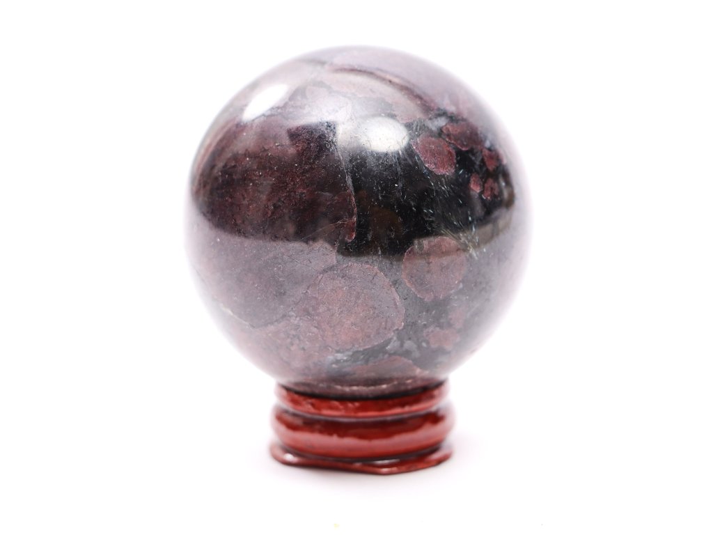 Granát koule 55 mm 300 g přírodní kámen + dřevěný podstavec #A331