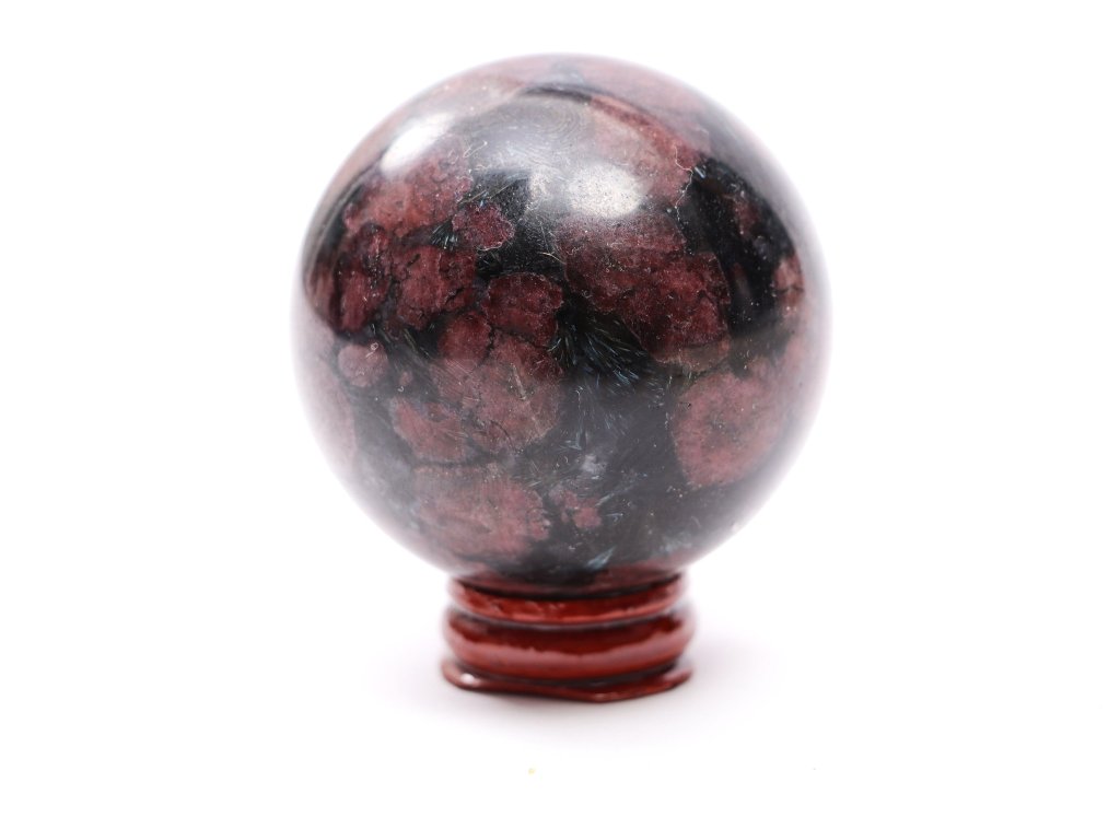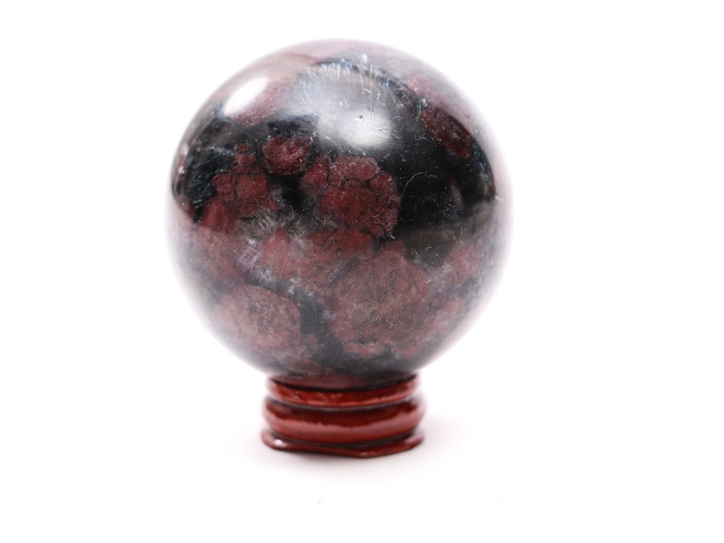 Granát koule z přírodního kamene + dřevěný podstavec