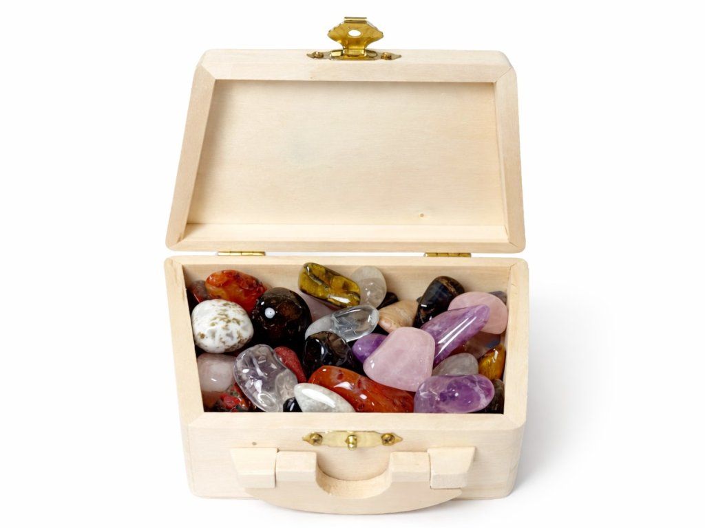 Dřevěný kufřík 15×5×11,5 cm s kameny MIX vel. M/L #ZB575