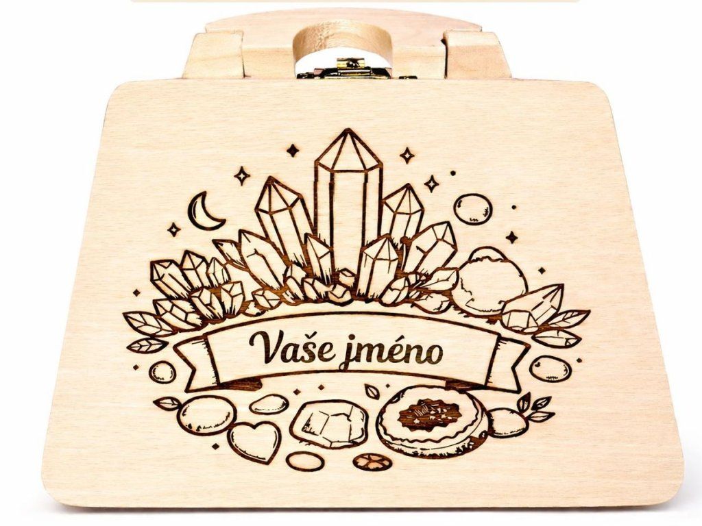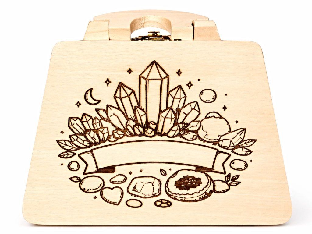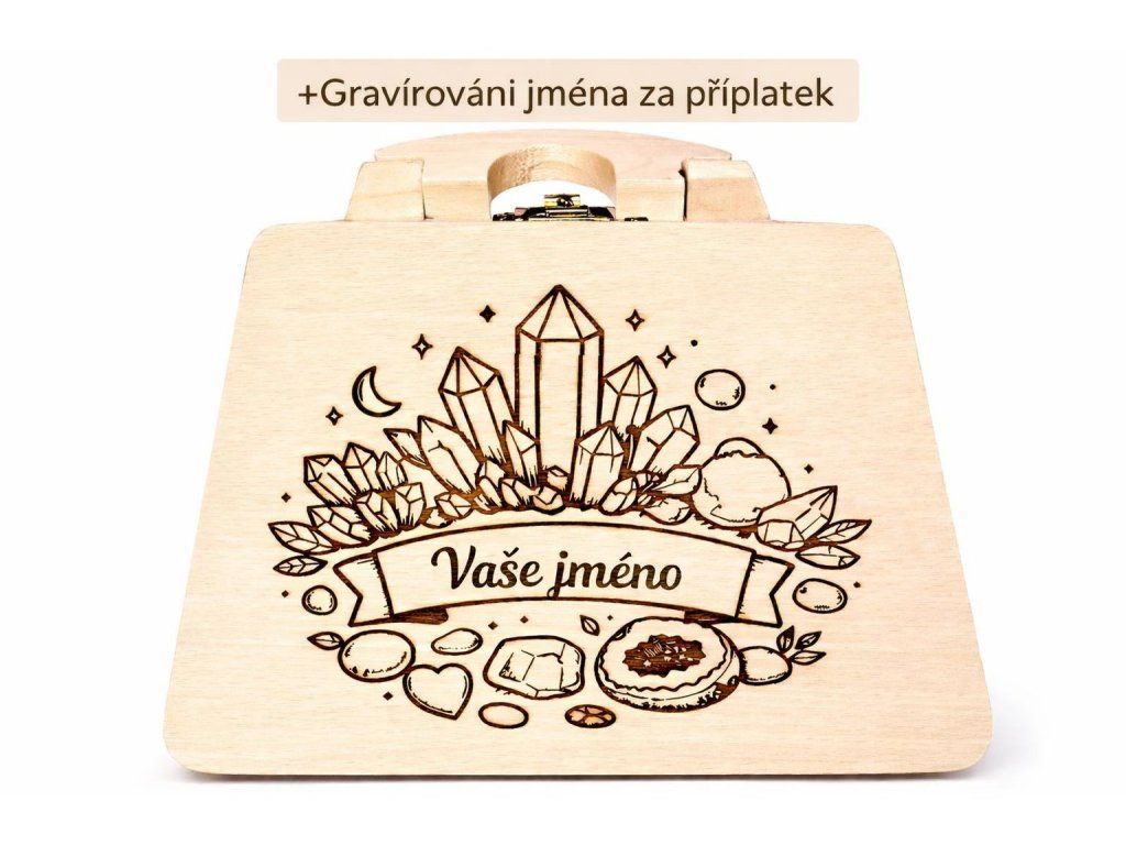 Dřevěný kufřík s motivem krystalů 15×5×11,5 cm #ZB571