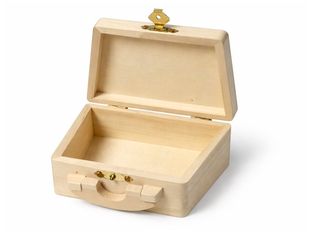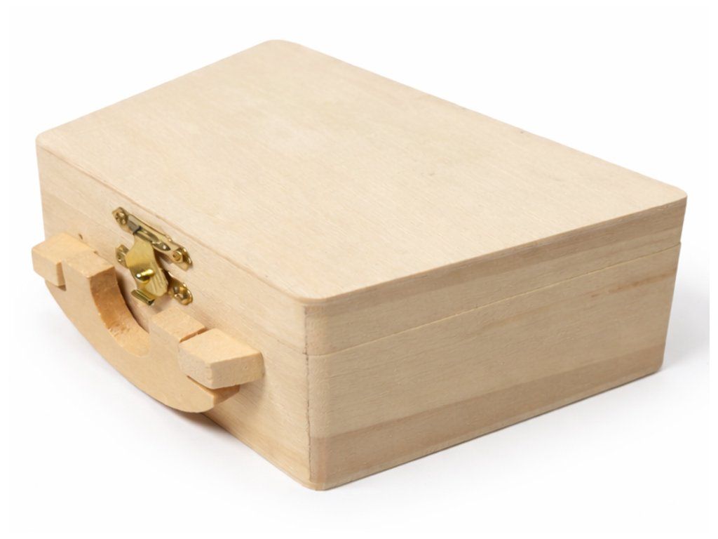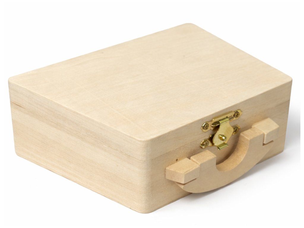 Praktický tvar kufříku z něj dělá hezký polotovar pro tvořivé projekty, drobný dárek nebo malou schránku na drobnosti. Rozměry jsou 15 × 5 × 11,5 cm, barva hnědá a materiál je dřevo s certifikací FSC®, tedy ze zodpovědně obhospodařovaných zdrojů.