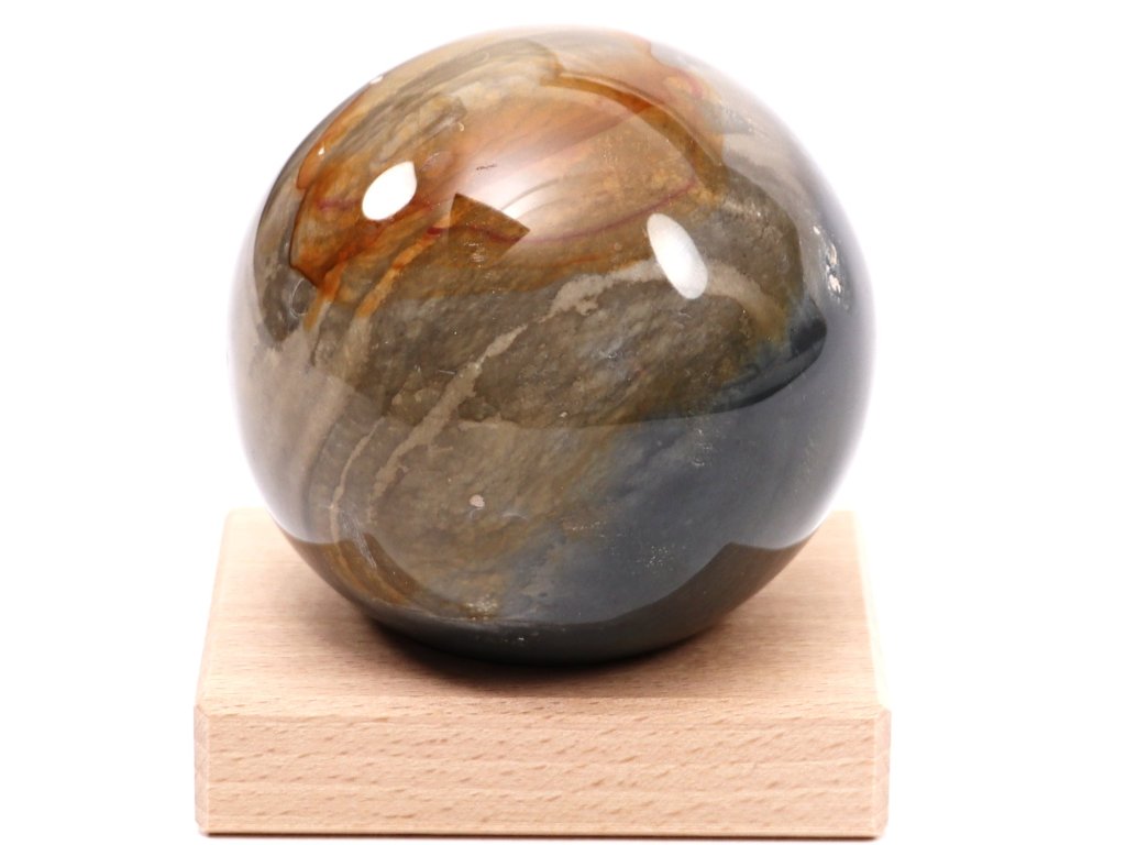 Jaspis oceánový koule 75 mm 596g přírodní kámen + dřevěný podstavec #C537