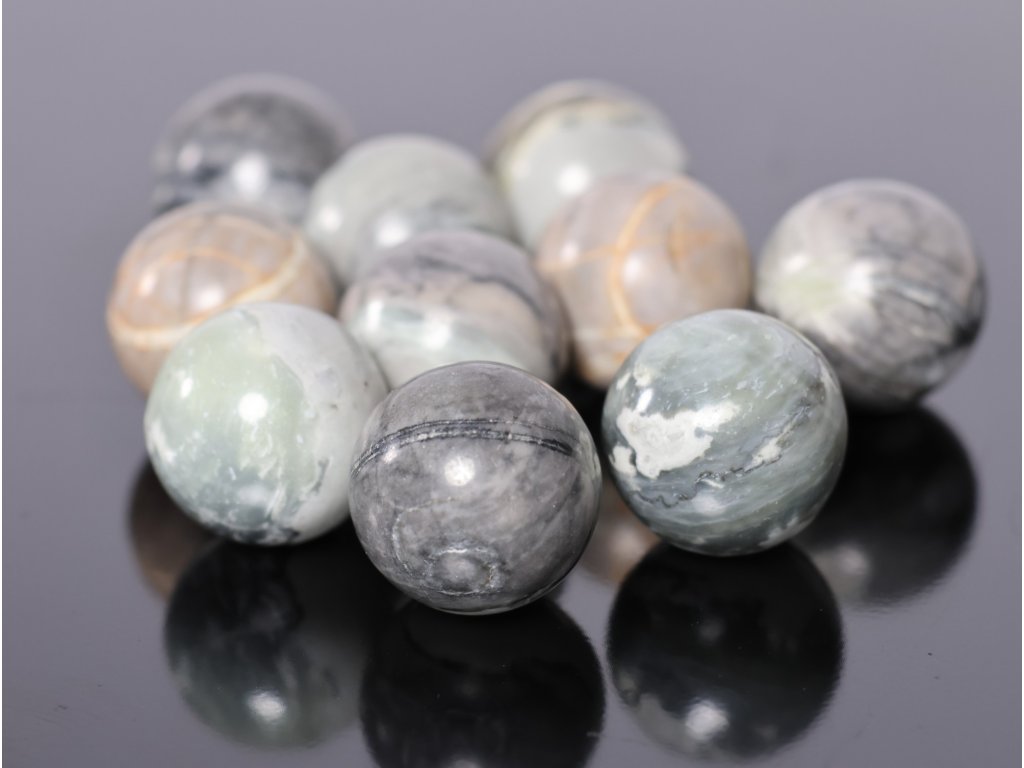 Elegantní leštěné kuličky z přírodního jaspisu Picasso zaujmou svou jedinečnou kresbou a originální barevností. Typické jsou pro něj šedo-černé, béžové až hnědé odstíny s výraznými liniemi a mramorováním, které připomíná umělecký malířský tah – i proto nese název Picasso. Každá kulička je jemně opracovaná do hladkého kulového tvaru a má příjemný přírodní lesk.