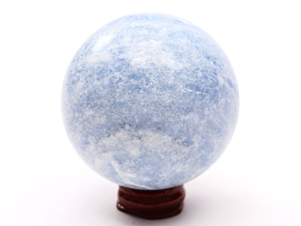 Kalcit modrý koule 75 mm 564 g přírodní kámen + dřevěný podstavec #K1049