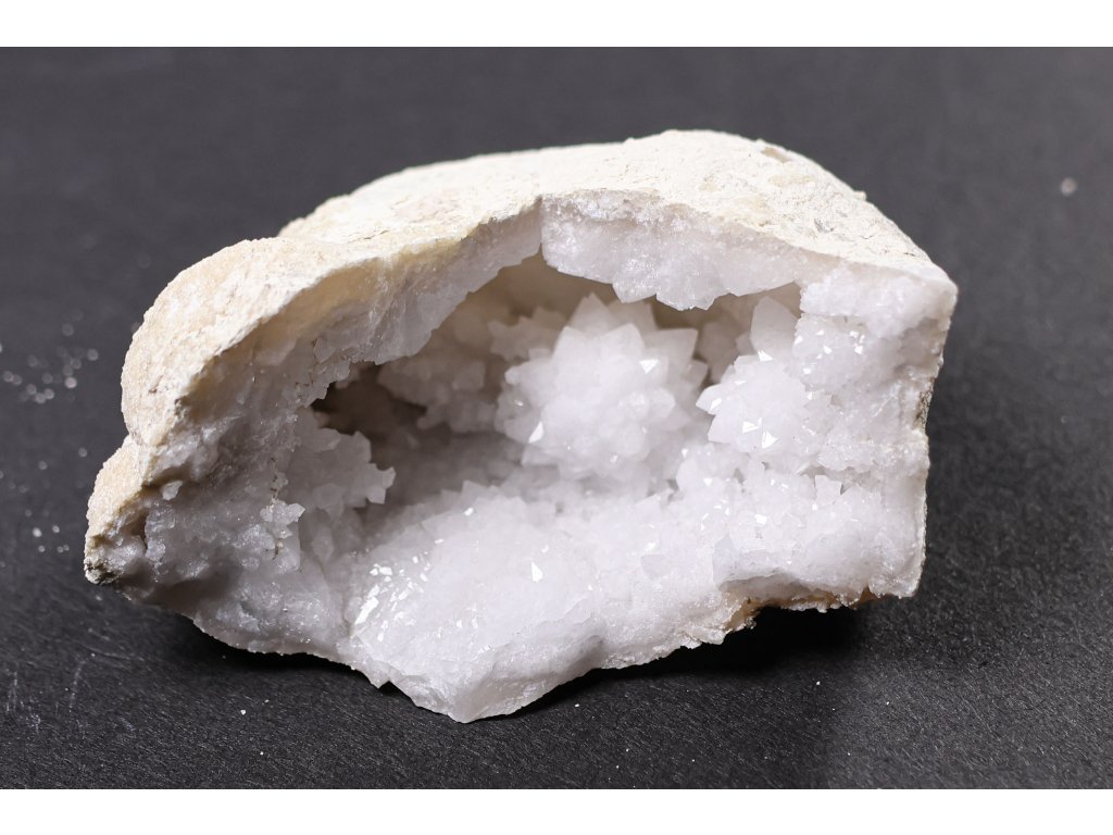 Objevte kouzlo přírody s touto originální křišťálovou geodou o rozměrech 4 × 9 × 6 cm a váze 170 g. Její jemně třpytivé krystaly vnesou do vašeho domova harmonii, čistotu a klid. 💎