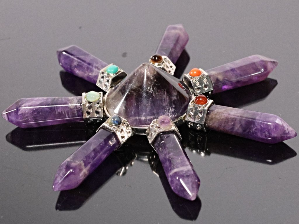 ✨ Krystalový generátor se 7 špicemi – Ametyst + chakra kameny ✨