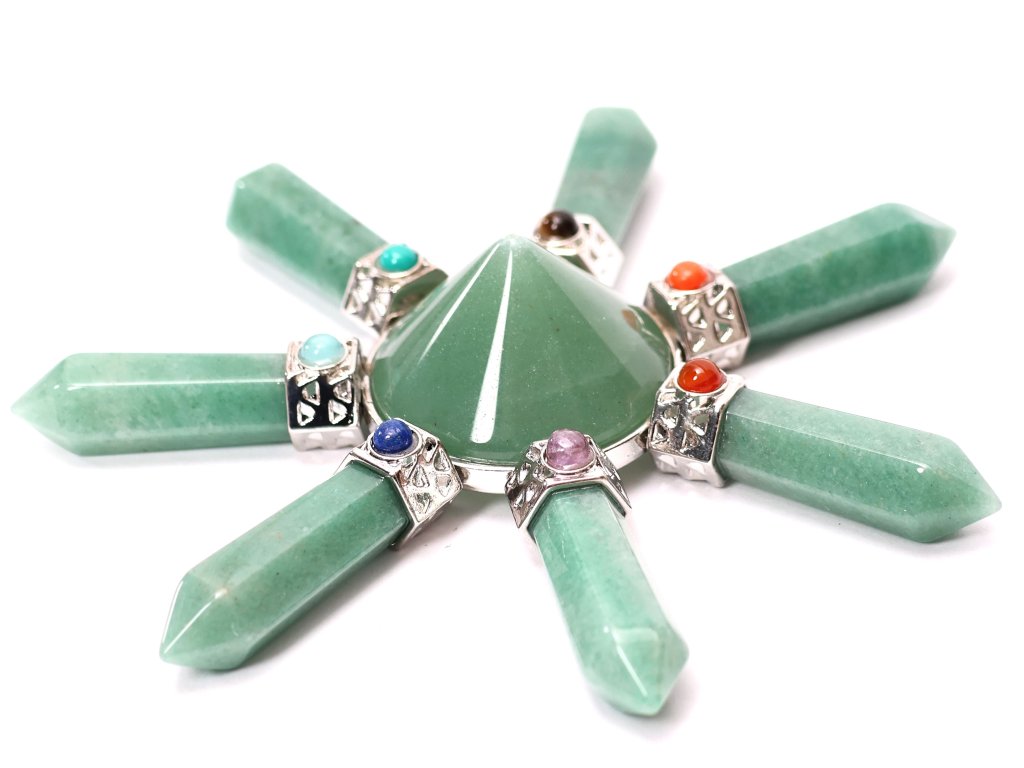 ✨ Krystalový generátor se 7 špicemi – Zelený avanturín + chakra kameny ✨