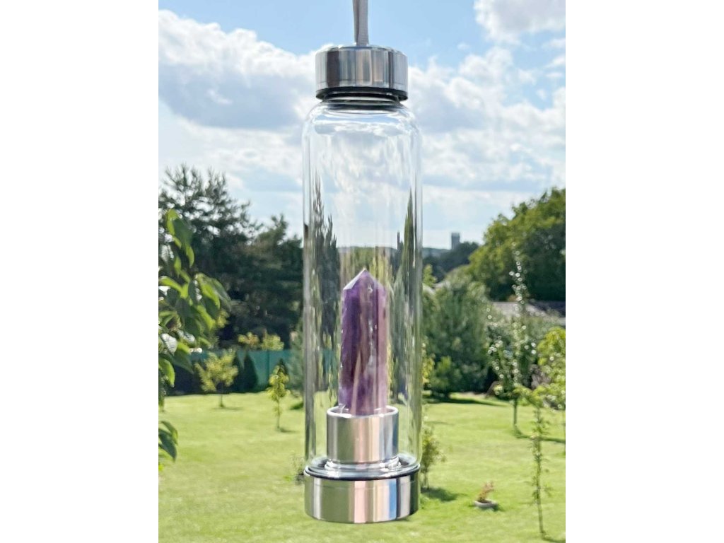 Láhev s krystalem ametystu – 550 ml - skleněná #LAH01