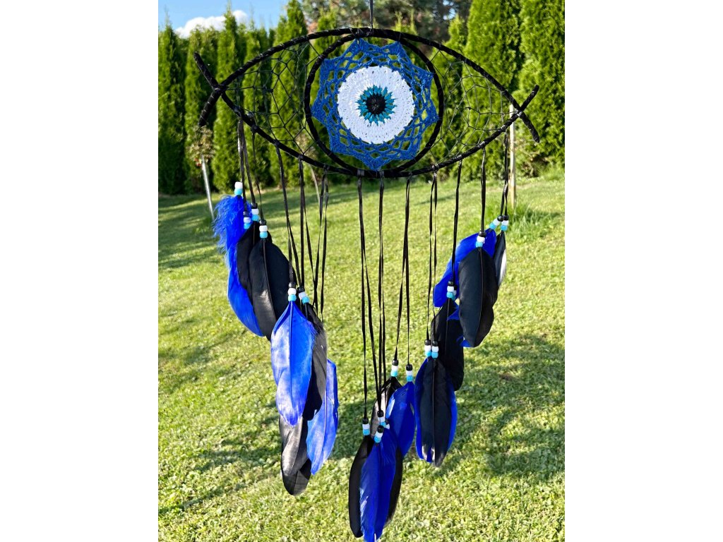 👁 Lapač snů – Oko ochrany s modrými pírky 👁
