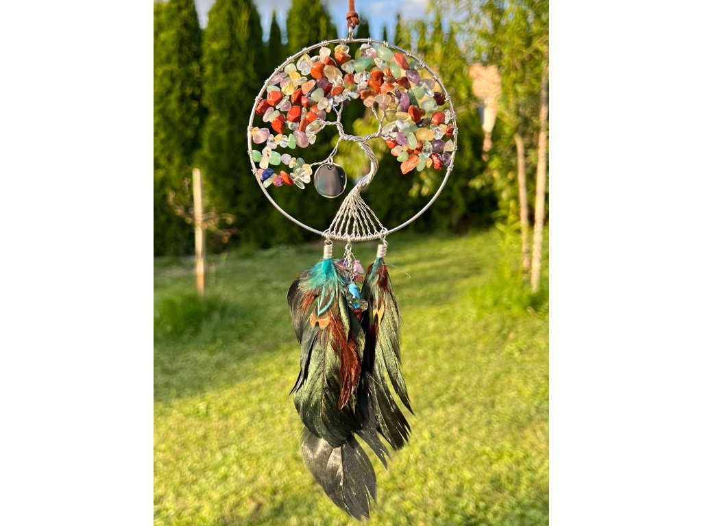 ✨ Lapač snů se stromem života z barevných minerálních kamínků ✨