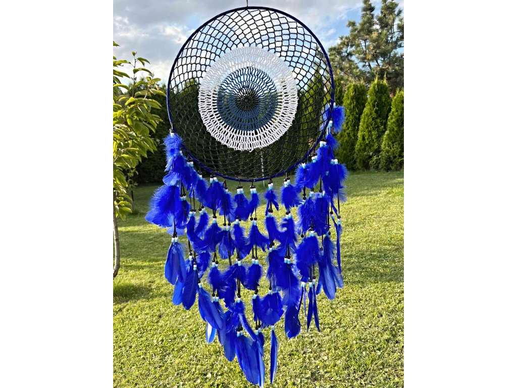 💙 Velký modrobílý lapač snů s háčkovaným středem 💙