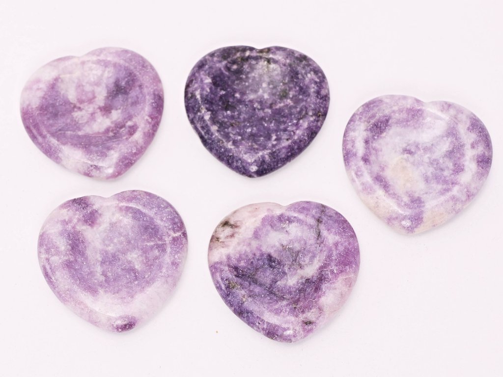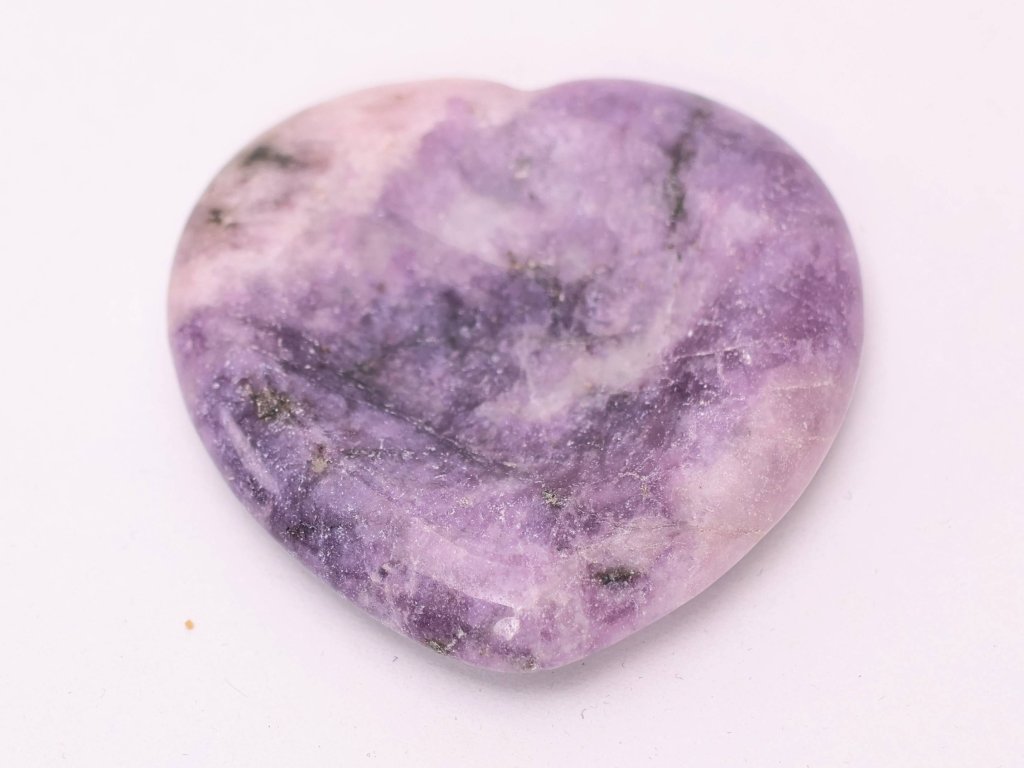 Masážní kámen Lepidolit hmatka srdce 45x35 mm #ZM31