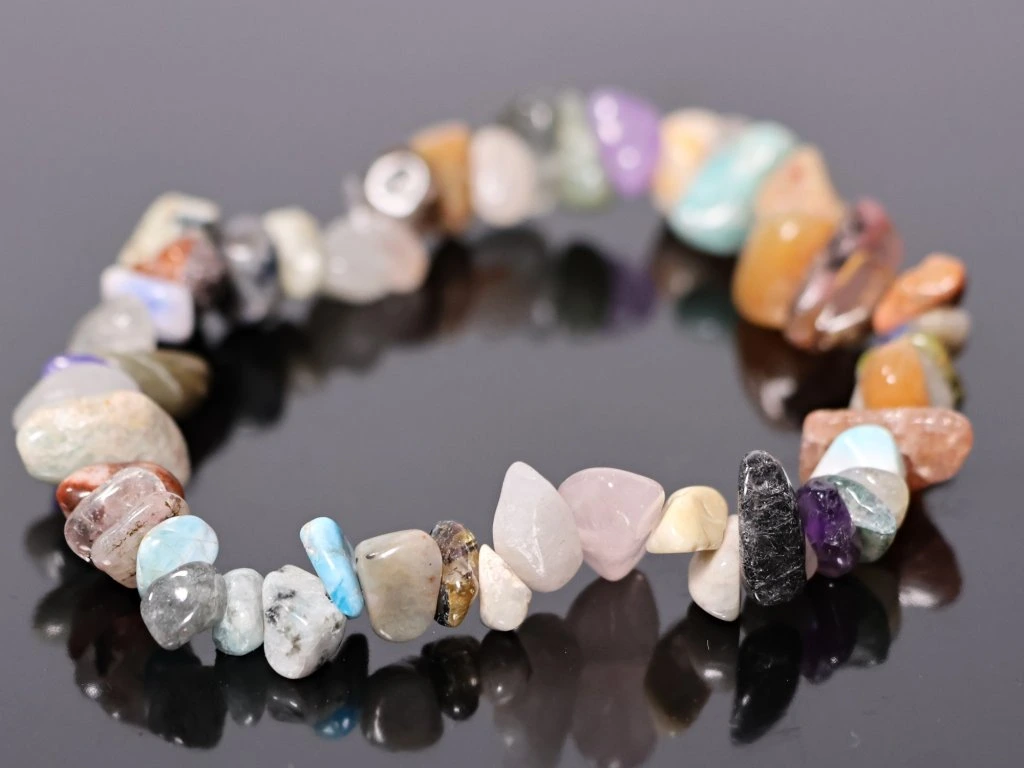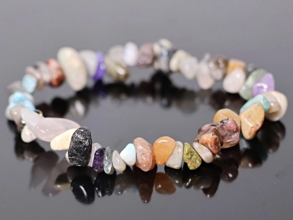 Ozdobte své zápěstí pestrou hrou barev a pozitivní energií! Tento okouzlující dámský náramek je bohatě zdobený tromlovanými kamínky v nádherném mixu oblíbených minerálů. Představuje dokonalý a velmi pohodlný doplněk pro milovnice boho stylu i krásný osobní talisman pro každý den.