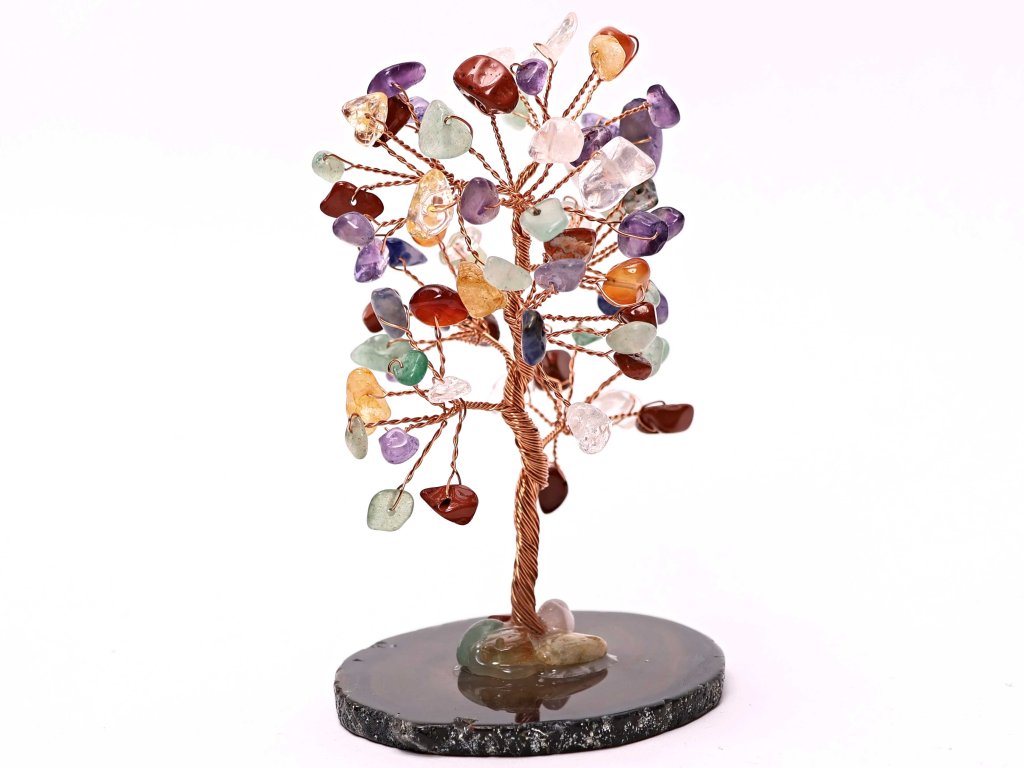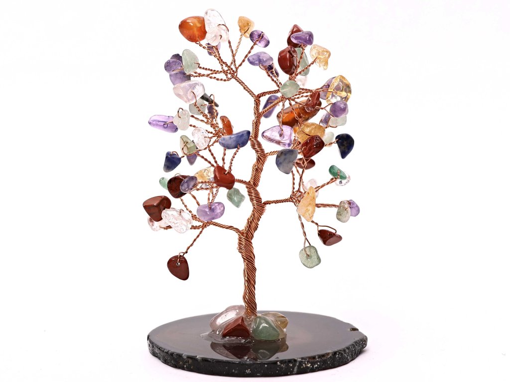 Každý stromeček je ručně vyráběný originál, a proto se může lišit tvarem, uspořádáním kamenů i barevným odstínem základny.