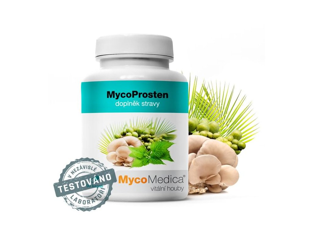 Přípravek MycoProsten je určen mužům na podporu správného fungování prostaty. Využívá pozitivních účinků vitální houby Maitake, kopřivy dvoudomé, serenoi plazivé, zinku, selenu a vitamínu E. Jejich synergické působení napomáhá přirozené obranyschopnosti, ochraně buněk před oxidativním stresem, normálnímu fungování močové soustavy a přispívá k udržení odpovídající hladiny testosteronu v krvi.