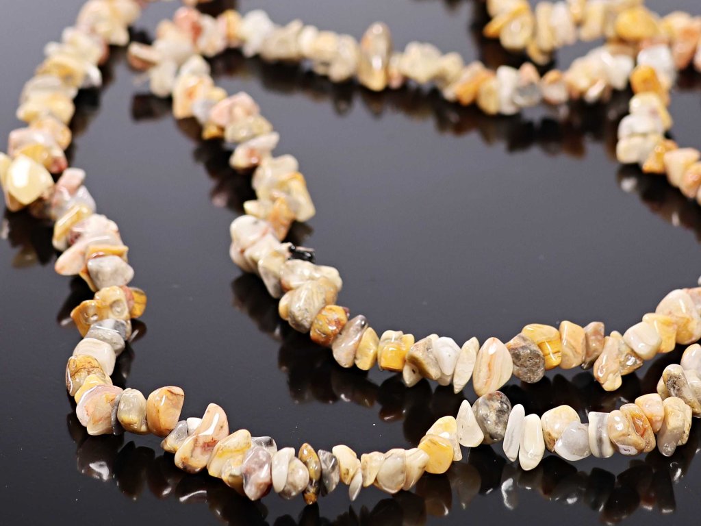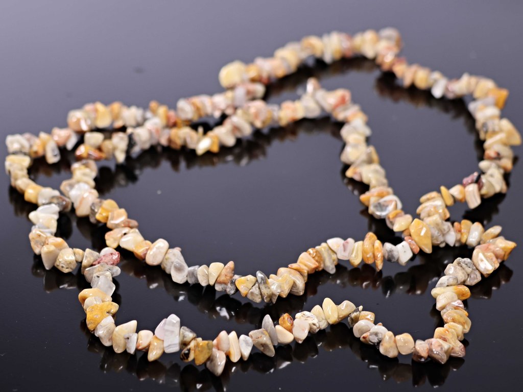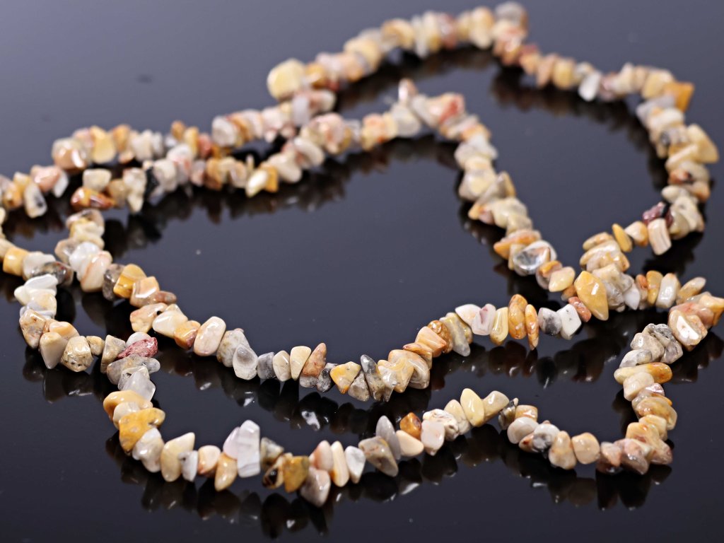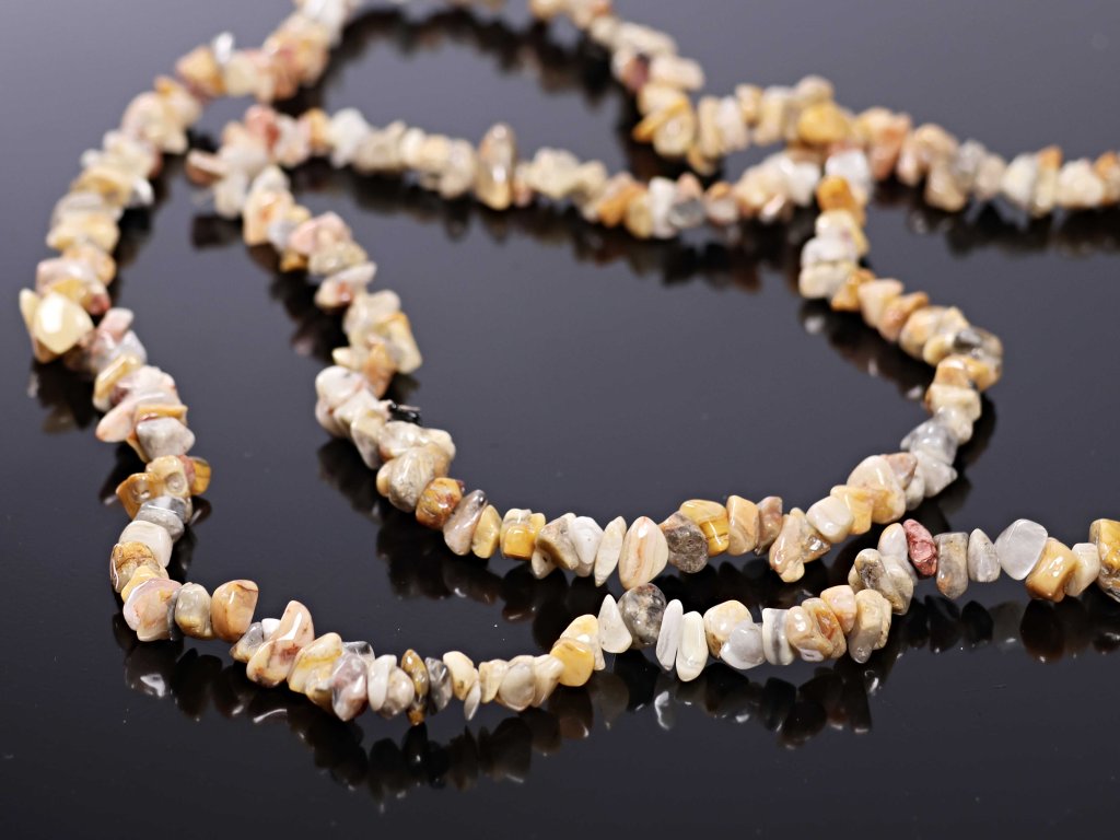 Elegantní náhrdelník z přírodního achátu krajkového (Crazy Lace Agate), složený z drobných sekaných a jemně tromlovaných kamínků o velikosti cca 5–8 mm. Tento druh achátu je oblíbený pro své nádherné, pestré kresby a jemnou energii.