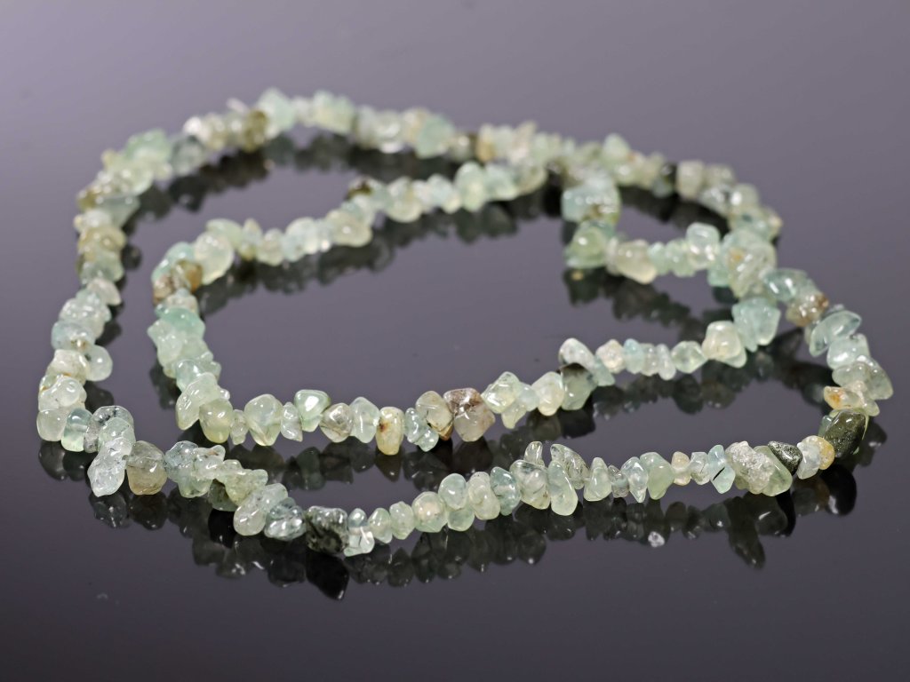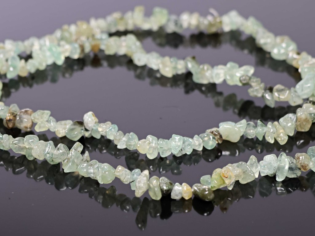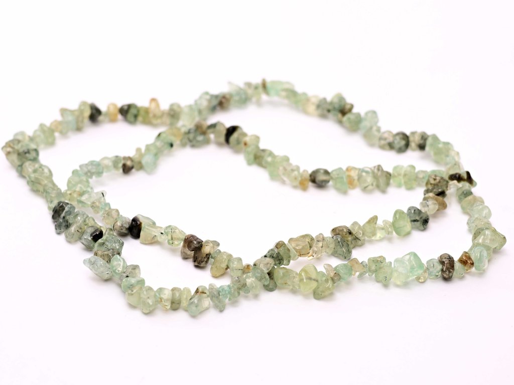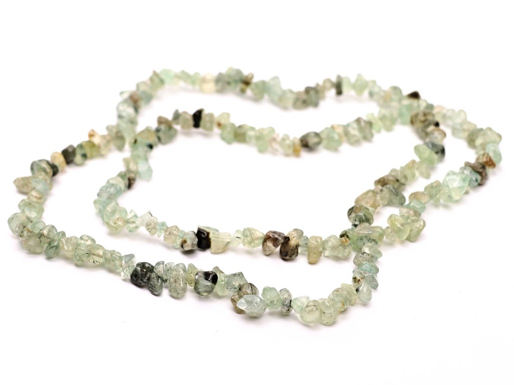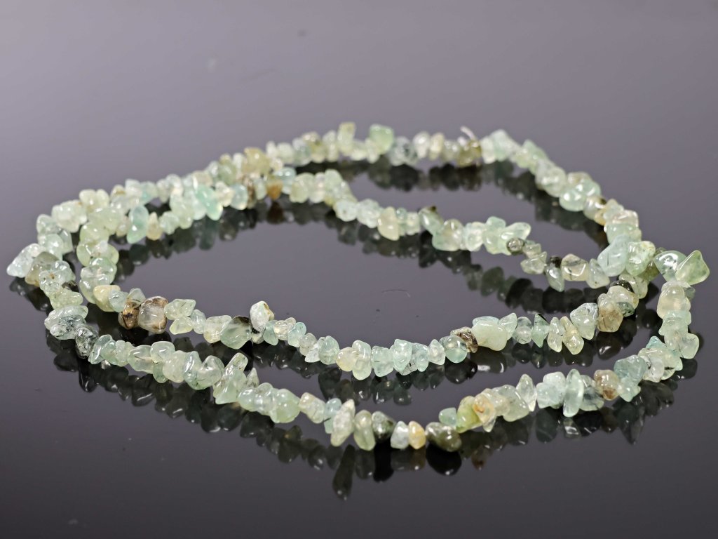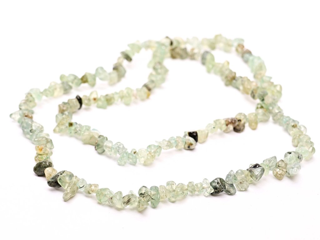 Jemný náhrdelník z přírodního prehnitu složený z drobných sekaných a lehce tromlovaných kamínků o velikosti cca 5–8 mm. Prehnit je ceněný pro svou světlounce zelenou barvu a jemný, uklidňující vzhled.