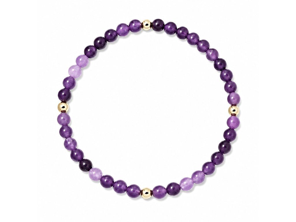Elegantní dámský náramek z přírodního ametystu zaujme krásnými fialovými odstíny a jemnou přirozenou kresbou kamene. Každý korálek je originál, díky čemuž má náramek jedinečný a harmonický vzhled.