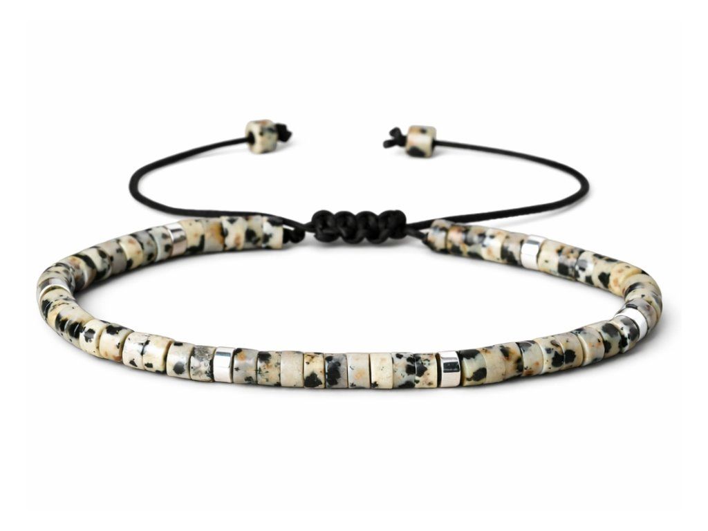 Jaspis dalmatin je oblíbený pro svůj výrazný a nadčasový vzhled, který snadno sladíte s běžným i elegantnějším outfitem. Přirozený charakter kamene může zahrnovat jemné barevné odchylky, tečkovanou kresbu a drobné nepravidelnosti, díky nimž je každý náramek originál. Náramek je vhodný pro každodenní nošení i jako stylový doplněk pro zvláštní příležitosti.