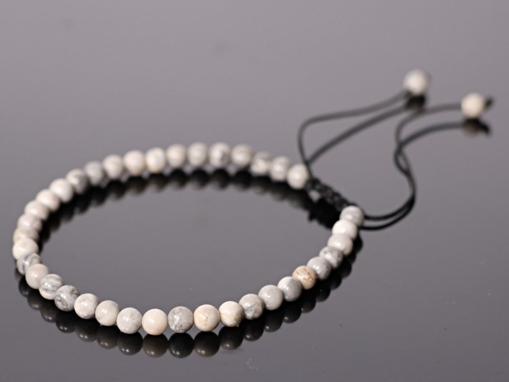 Minerální kuličky jsou navlečeny na pevné černé šňůrce s posuvným makramé zapínáním, které umožňuje snadné přizpůsobení velikosti zápěstí a zajišťuje pohodlné nošení. Každý náramek je originál – drobné rozdíly v kresbě a odstínech kamenů potvrzují přírodní původ minerálu.