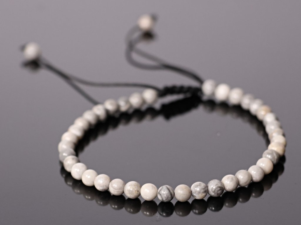 Tento elegantní ručně vyráběný náramek je tvořen z minerálních kuliček z přírodního jaspisu Picasso, který se vyznačuje světlými šedými až krémovými tóny s jemným tmavším žilkováním připomínajícím malířskou kresbu. Leštěné minerální kuličky o velikosti cca 5 mm působí jemně, decentně a nadčasově, díky čemuž je náramek ideální pro každodenní nošení i jako nenápadný elegantní doplněk.