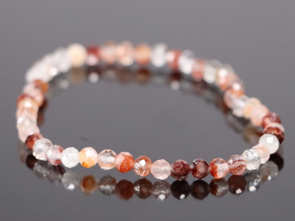 Náramek Křišťál červený fantom květ - fazetovaný - 4 mm kuličky #941 - z přírodních kamenů