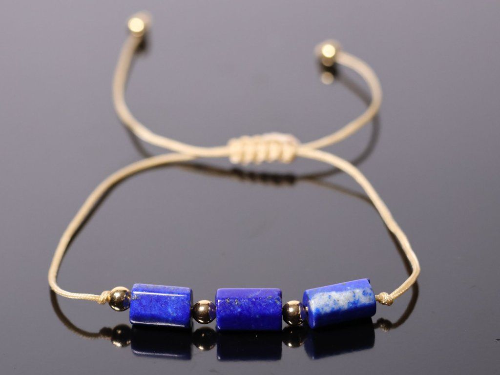 Shamballa náramek z přírodního lapisu lazuli zaujme svou sytě modrou barvou, přirozenou kresbou kamene a elegantním zpracováním. Sloupkové korálky z lapisu lazuli doplňují kovové korálky ve zlatém odstínu a pletená nylonová šňůrka. Díky posuvnému zapínání ve stylu Shamballa je náramek roztažitelný, pohodlný na nošení a snadno nastavitelný podle velikosti zápěstí.