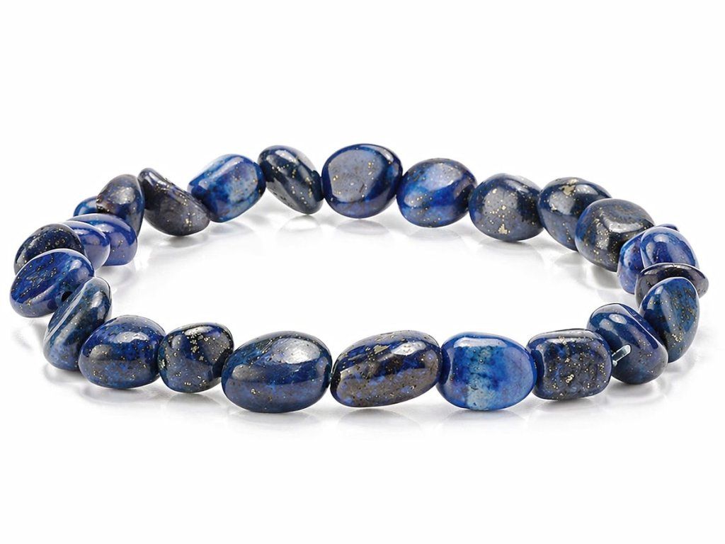 Elegantní náramek z přírodního lapisu lazuli zaujme svou hlubokou královsky modrou barvou, která je typická jemnými zlatavými odlesky pyritu. Každý kámen má originální kresbu, díky čemuž působí náramek luxusně a zároveň přirozeně.