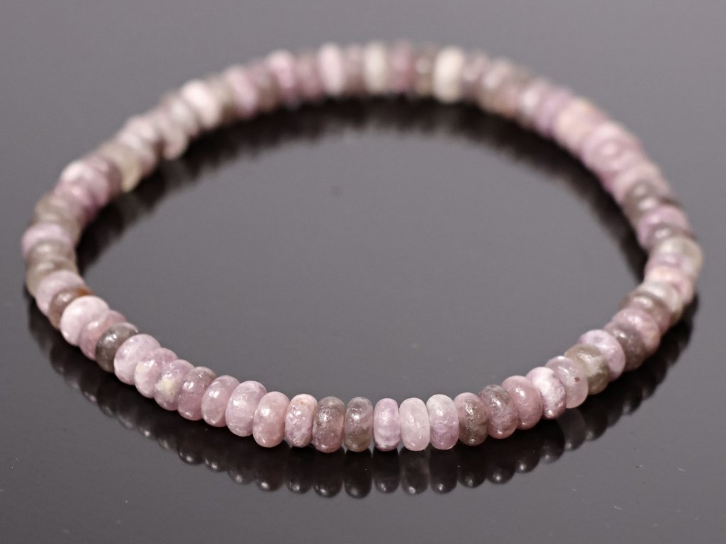 Náramek z lepidolitu 5 mm – elastický - ploché korálky #1033