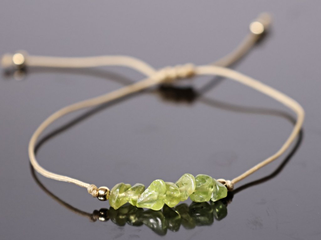 ✨ Náramek z olivínu (peridotu) – jemný minerální šperk s nastavitelnou velikostí + kartička ✨