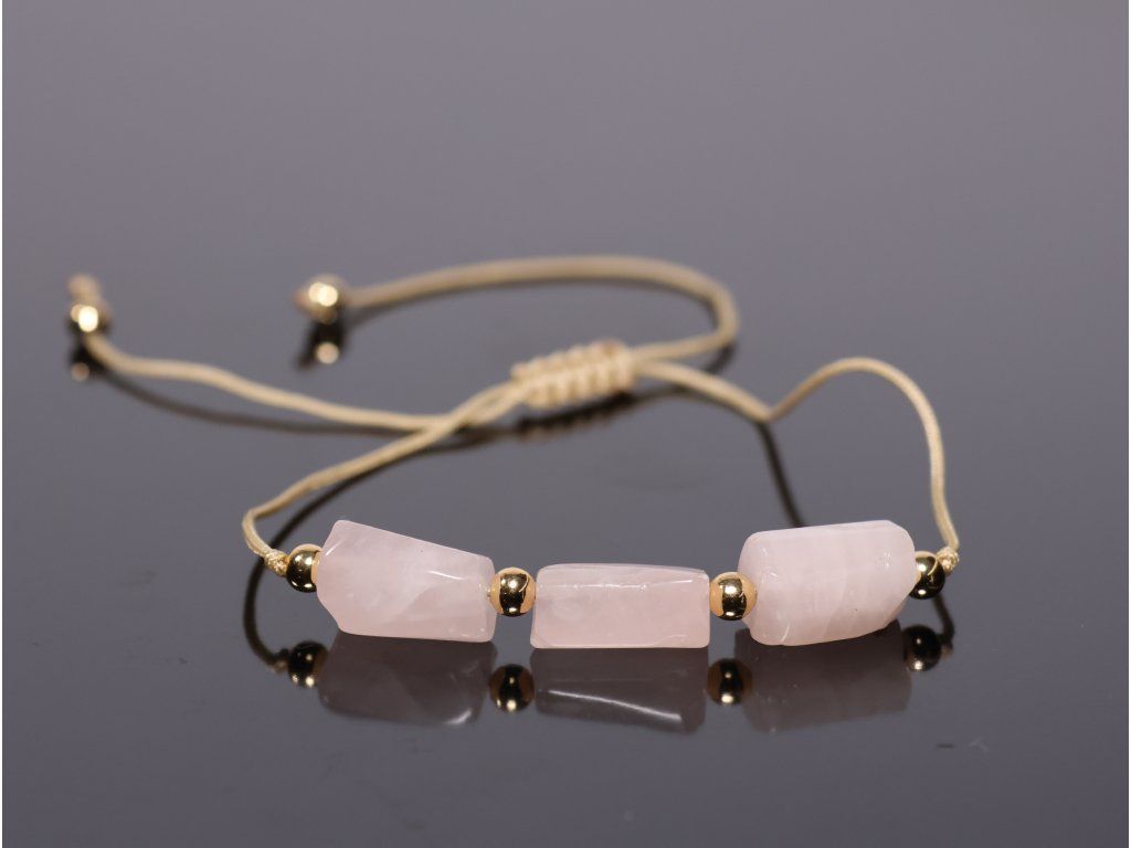 Shamballa náramek z přírodního růženínu zaujme svou jemnou růžovou barvou, přirozenou kresbou kamene a elegantním zpracováním. Sloupkové korálky z růženínu doplňují kovové korálky ve zlatém odstínu a pletená nylonová šňůrka. Díky posuvnému zapínání ve stylu Shamballa je náramek roztažitelný, pohodlný na nošení a snadno nastavitelný podle velikosti zápěstí.