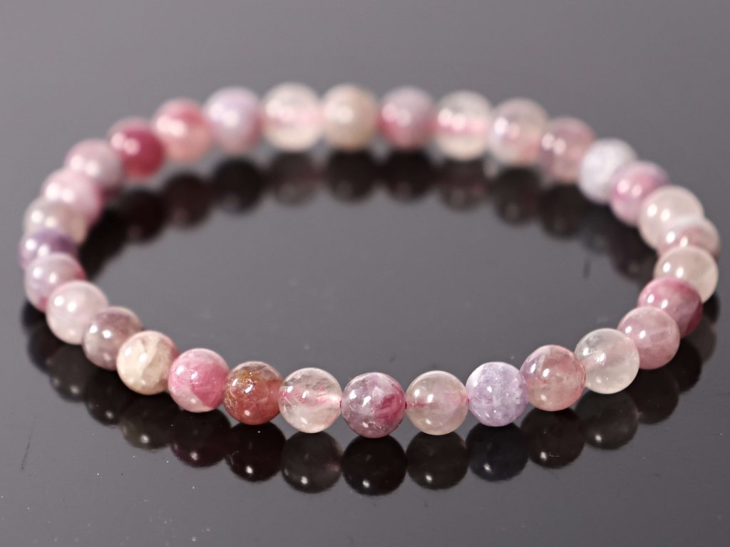 Noste na zápěstí celou paletu láskyplných odstínů. Tento náramek z růžového turmalínu je oslavou rozmanitosti, kterou nám příroda nabízí. Korálky hrají barvami od jemné, světle růžové, přes sytější tóny až po elegantní fialkové a levandulové odstíny. Není to jen šperk, je to talisman, který odráží všechny podoby lásky a soucitu.