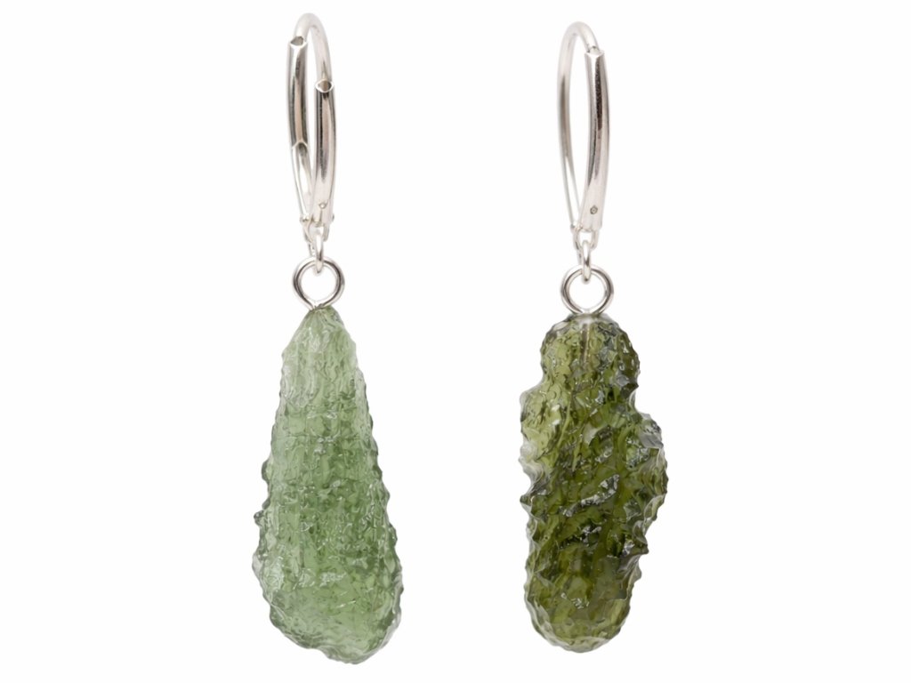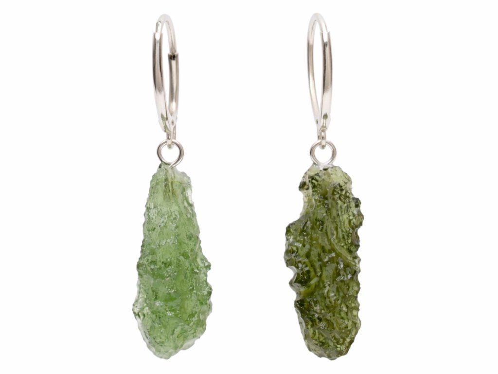 Jemné a originální náušnice s přírodním vltavínem zaujmou svou přirozenou strukturou a typickou světle zelenou barvou. Každý vltavín má unikátní tvar a povrch, díky čemuž je každý pár náušnic naprostý originál.