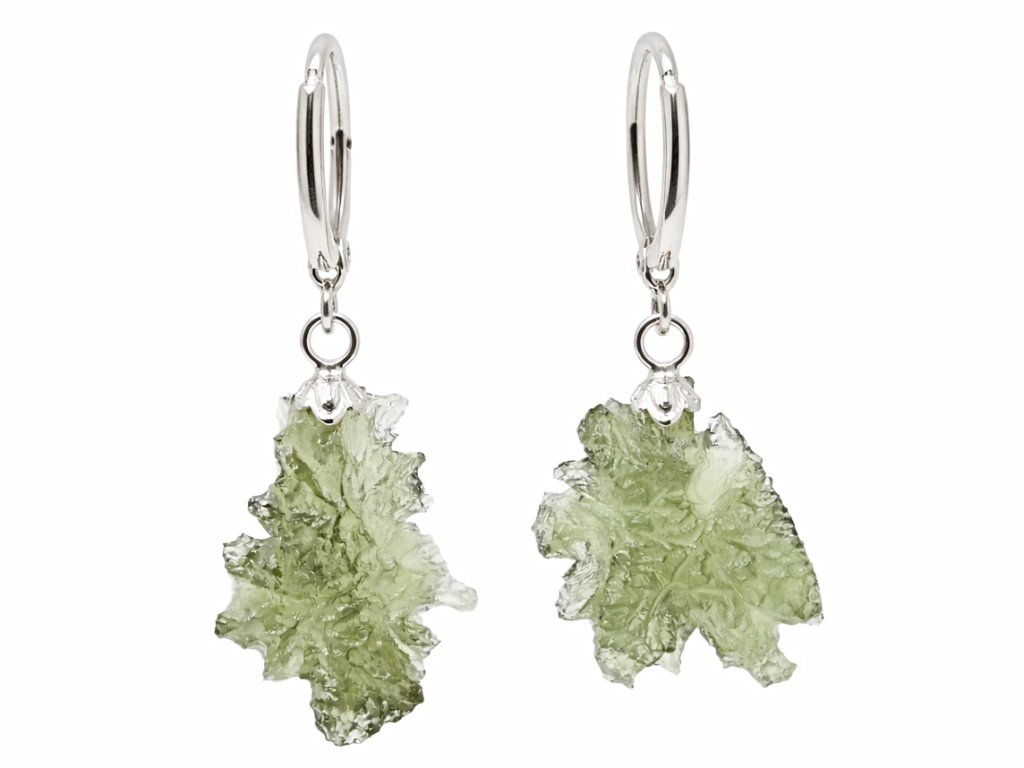 Elegantní náušnice s přírodním vltavínem, které zaujmou svou jedinečnou strukturou a typickou zelenou barvou tohoto výjimečného kamene. Surové vltavíny mají krásný přírodní povrch a nepravidelný tvar, díky čemuž je každý pár náušnic originální.
