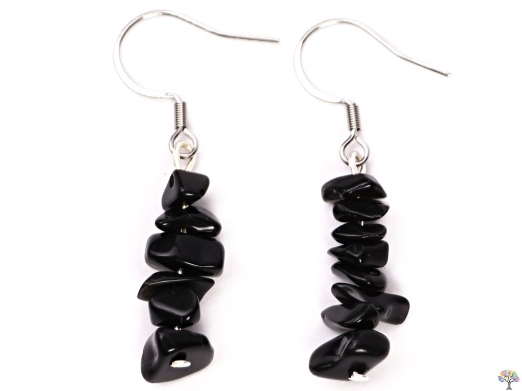 Náušnice z kamene Obsidián černý - leštěné přírodní kamínky