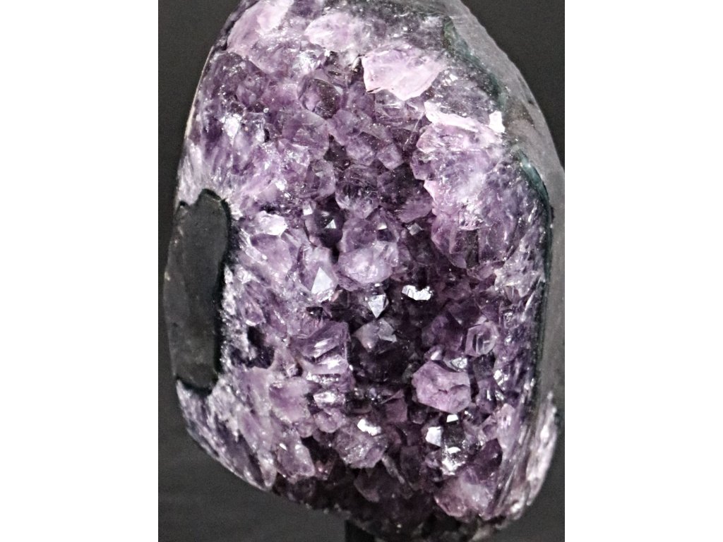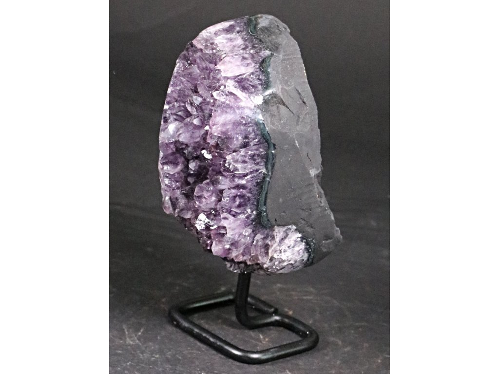 Ametystová drúza vysoké kvality s krystaly fialové barvy na kovovém stojánku