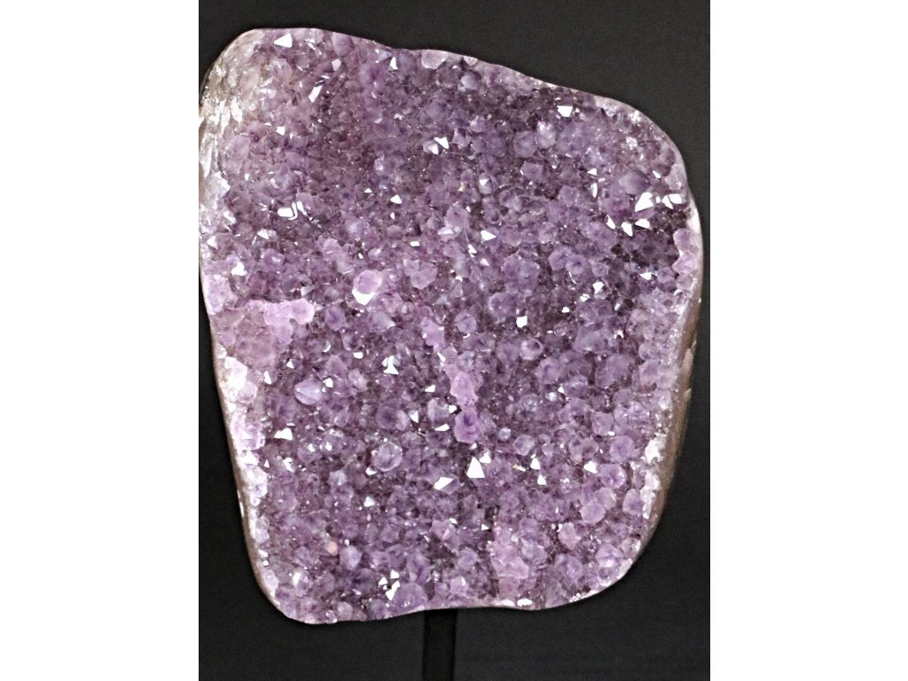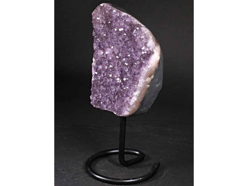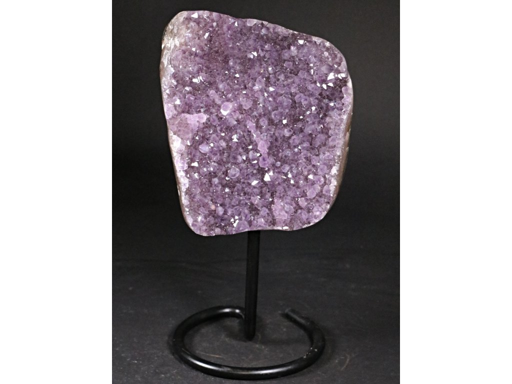 Ametystová drúza vysoké kvality s krystaly fialové barvy na kovovém stojánku