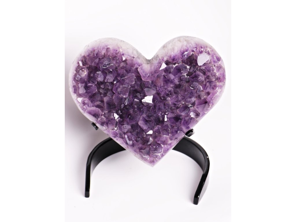 Ametystová drúza vysoké kvality s krystaly fialové barvy ve tvaru na kovovém stojánku