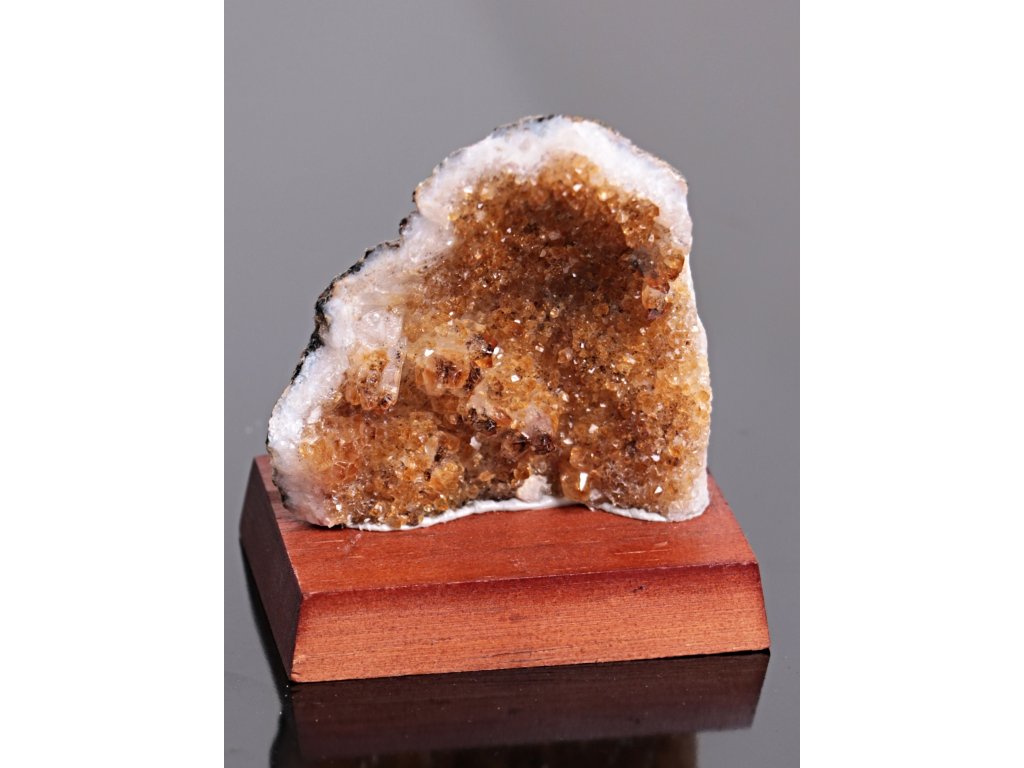 Citrínová drúza vysoké kvality na dřevěném podstavci