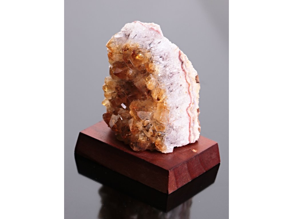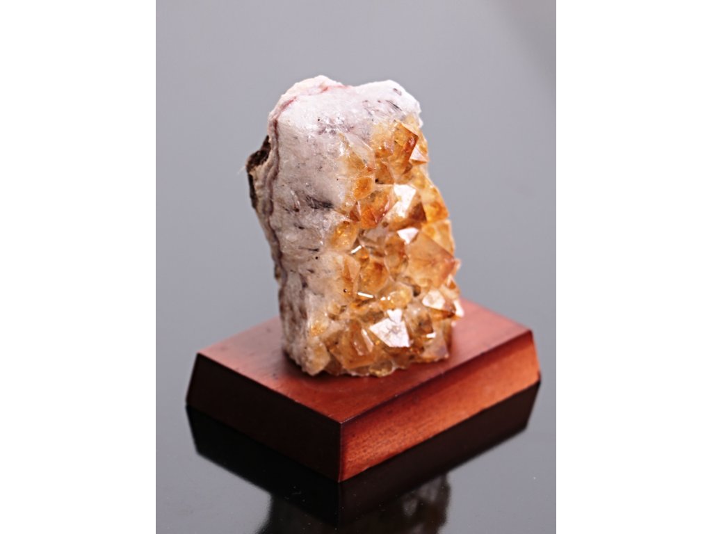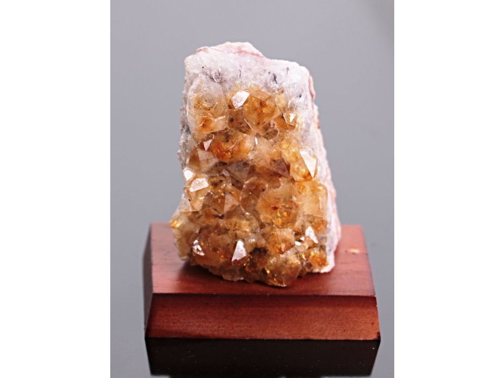 Citrínová drúza vysoké kvality na dřevěném podstavci